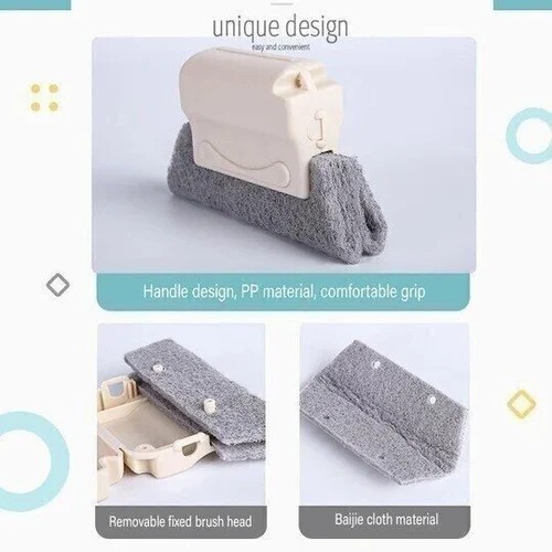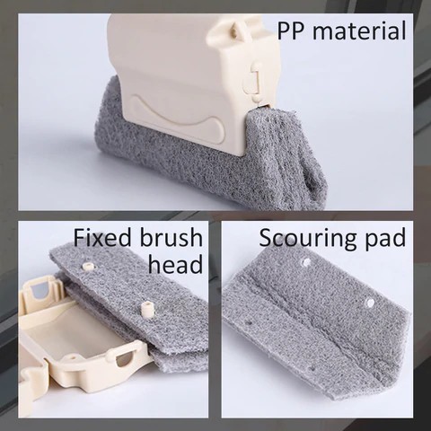 PP material handle, comfortable grip, fixed brush head design scouring pad material, good cleaning power, can clean door and window slides and gaps, etc. easy and effortless. Handheld convenience - compact and easy to grip, not dirty, clean and effortless. Multi-scene application - daily home cleaning, easy and effortless. Fit clean surface for easy cleaning. Material: PP + scouring pad; Weight: about 35g; Size: 8 * 14 *2.5cm.