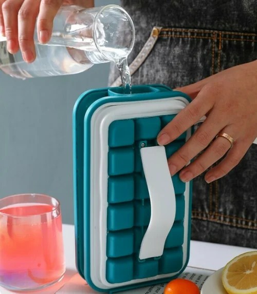 THIS IS AN ICE CUBE TRAY FROM DENMARK IT IS SUITABLEFOR SUMMER IT IS HANDY AND EASY TO GO OUT. Creative design, two-in-one curling kettle. Strong paste and strong sealing, dripping water does not leak and refuses odor. Size: 22 * 12cm; Material: food grade material.