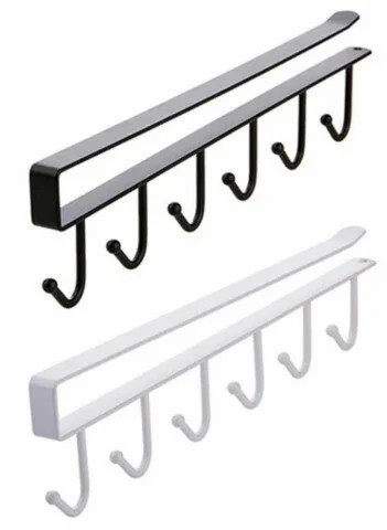 The Under-Cabinet Hanger Rack offers a convenient way to hang cups, cookware, towels, gloves or anything you want to hang under the cabinet, the shelf, or any other entrance channel. Our under-cabinet rack is so easy to install. Simply slide the rack over a cabinet or shelf and it is all set up. No complicated installation needed, totally nail-free. The rack was designed specifically to fit any standard shelf and offers six robust hooks that hold up to 20kg (44lbs) for your kitchen essentials. Space Saver: The under-cabinet racks make use of the unused space in your home. Ensure your kitchen utensils are organized and coordinated. Robust & Sturdy: Sturdy steel constructed, these racks can hold up to 20 kg (44 lbs), enough to hold cups, cookware, pliers and other items. Easy to Install: Simply slide in the rack over a cabinet, with the curved-ends that locked on the cabinet. Multi-Use: Our hangers can hold spoons, towels, gloves, etc. or things you want to hang in the kitchen, bathroom or other places. Creative Design: Comes with two colors and a stylish design to match your kitchen interior. Material: Iron with waterproof finishing; Size: 15 * 1.6 * 0.7cm; Package includes: 1 * Under-Cabinet Storage Rack (6 Hooks);