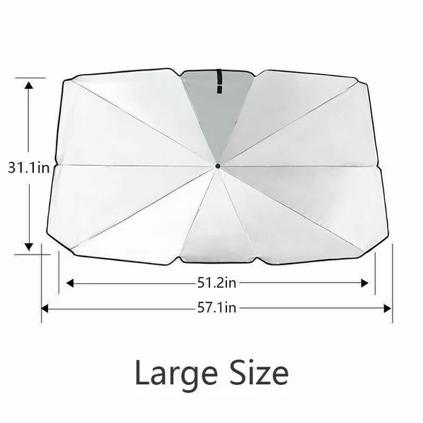 Safe odor-free material, Under high temperature exposure, it does not produce bad smell. Safe and high quality materials. Effectively reflects sunlight The compound titanium silver glue with good heat dissipation effect can effectively reduce the temperature inside the car. This car windshield sun shade umbrella uses high-quality aluminum foil material to block a lot of heat and reflect sunlight, which can effectively reduce the temperature inside the car and prevent damage and aging of the car interior. This automotive car sun umbrella for windshield protector can block the sun and rain outdoors, a multifunctional car parasol you deserve! This car windshield sun blocker is time-saving and convenient, ready to use, non-destructive installation, small storage volume after folding (with a storage bag), can be placed on the side of the car door and the central storage box to save space and easy storage. This car sun umbrella is convenient for daily use and is the ideal sun shade accessory for cars in summer! This sun shade for car windshield cover is heat and heat resistant, preventing damage from direct sunlight. Under the conditions of sunlight and high temperature, the car windshield visor sun shade will not emit odors and harmful gases, keep the air in the car fresh, and ensure green travel. The unique design of wrapped umbrella beads does not damage the car interior and paint, and is non-destructive to installation and use.