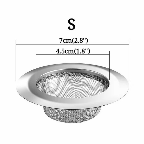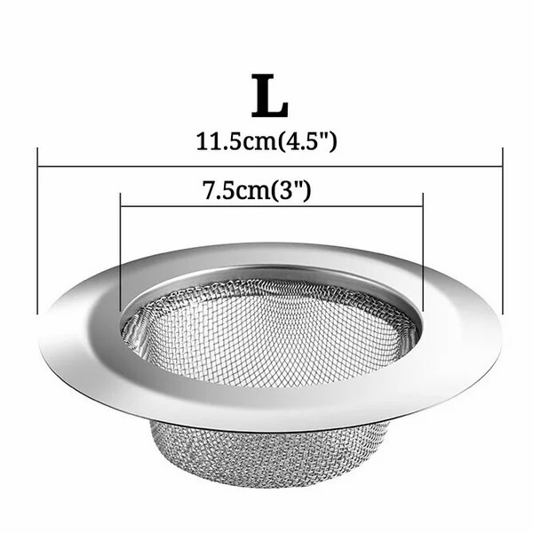 Perfect for long-lasting protection against clogging in daily utilitarian use and stop large food particles from going down the drain while still allowing the free flow of water, no more clogged sink/sewer - all small particles are stopped in the filter. This mesh filter is made of thickened stainless steel.Reliable construction, non-rust. The mesh design can effectively strain and accommodate small particles, which will not clog the sink and facilitate cleaning. Generous capacity to retain residues without obstructing the flow of water. High-density small mesh ensures the sink stopper to collect all the food particles preventing your drain from clogging. A perfect tool to stop hair, wastepaper, food remains from creating blockage. Made of 304 stainless steel which is non-deforming & rust-free. And is much easier to clear the debris that builds up during a washing. The flat drain stopper is too heavy to move around and shift position whenever you pour a large amount of liquid into the sink and stay anchored unless you pull it out by yourself. Easy to wash with warm soapy water to keep the mirror finish shine and impeccable over time. This design is anti-clog to give you fewer problems and let you work much faster in the kitchen. Just right for washing dishes, preparing meals, cleaning foods, and much more.Dishwasher safe. Material: Stainless Steel. Color: Silver.