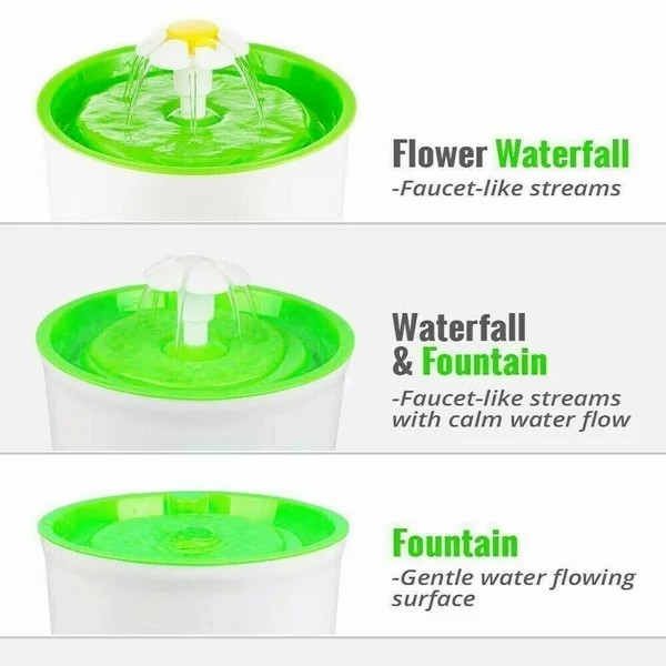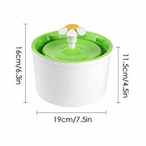 Unique Design: Cat Fountain allows 3 different water flow settings for picky drinkers and offers maximum oxygenation for fresher, better tasting water. High Quality Material: BPA Free plastic, through food-grade certification. Easy to disassemble and clean, with detailed instructions manual. Water Capacity: Pet water fountain with 1.6L/56 ounces capacity, suitable for cats and birds, small and middle size dogs. Keep Water Fresh: Pet water dispenser includes a replaceable carbon water filter that removes bad tastes and odors. Quiet & Efficient Pump: This pump runs super quiet, with 2w low power consumption. Can run for 10,000 hours and can run dry for 48 hours. Material: ABS + PP + electronic component. Water Storage Capacity: 1.6 L (56 OZ); Water Pump flow: 32 GPH (120L / H); Water Pump Power: 2W ( measured 3.5W ) ; Operation voltage: AC110V/60HZ; Output: AC12V-300mA; Net Weight: 1.5lb/680g;Size:as the picture shows; PACKAGE INCLUDED: 1x Automatic Pet Water Fountain; 1x Activated Carbon Filter Cotton; 1x AC Pump; 1x AC Adapter.