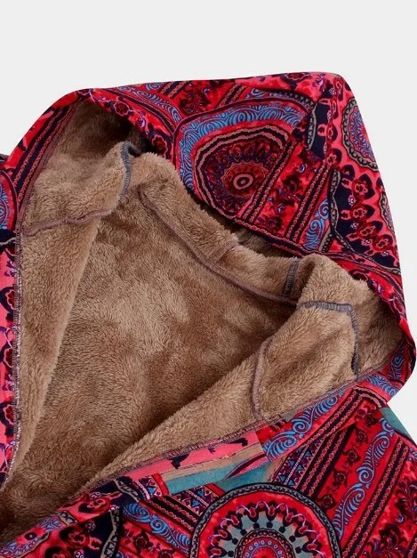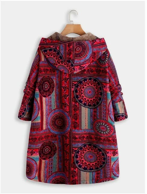Season: Winter; Style: vintage; Closure Type: Single Breasted; Material: Polyester; Hooded: Yes; Filling: Cotton; Thickness: Thick (Winter); Type: Regular; Pattern Type: Print; Clothing Length: long; Decoration: Flowers; Decoration: PATTERN; Decoration: Pockets.