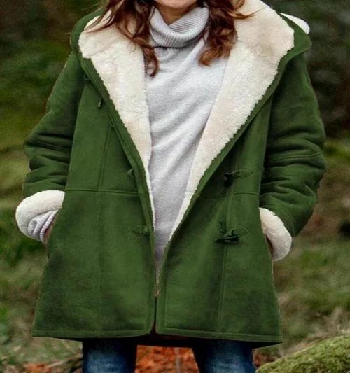 Women Winter Warm Plus Velvet Horn Buckle Pocket Coat
